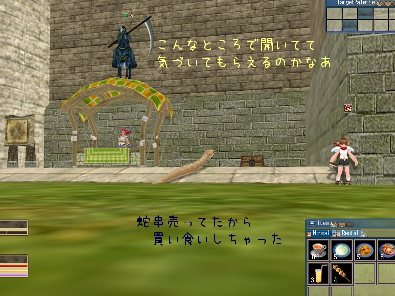 でも一般的なプレイヤーの枠に当てはめて考えてみると、これはむしろアリかもと思えるのが MoE なんでしょうね。 迷惑を掛けない分には好き勝手やってても構わないのは勿論のこと、この手のものなら同調してノッてくれる人だっていると思います。 とりあえず私は安価で並べてあった蛇串を買い食いしておきましたよっ。 まくまく。 繁盛するといいですね。