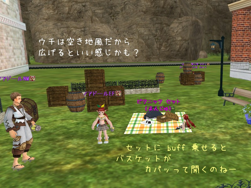 ピクニックセットは下僕扱いです。 出して広げるにはペット枠が必要。 ペット屋に預けっぱなしのウーは特殊扱いなのでいいのですが、ウチには冥にデコイとして連れて行ってるオルヴァンちゃんが……。 調教になんてスキル振れませんから、申し訳ないけど涙を飲んでリストラですね。 テク購入を決めた時点で決定事項だったわけですし。