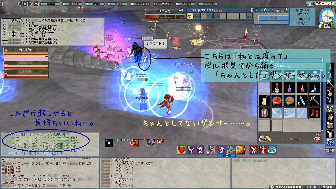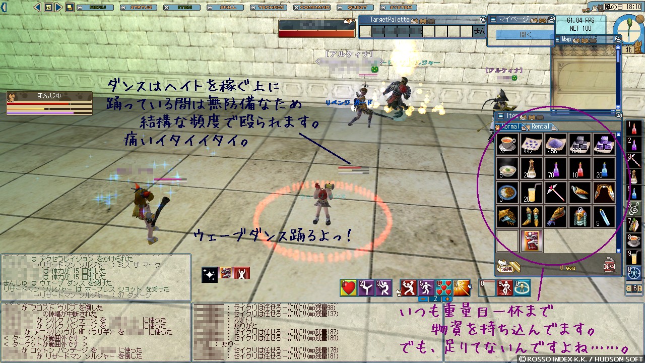 道中はいつも通り。 ちょっと間が開いていたこともあって ST、MP 管理が甘かったですけど、これくらい人数が居たから特に問題はなかったと思います。 ただ、ウェーブ、レッツ、セイクリ、リフレ、リバ等々、どれを選択するかはまだまだ勉強すべきだと痛感しました。 道中は超スピードだし、すばやい判断が求められますね。 なかなか難しいです。
