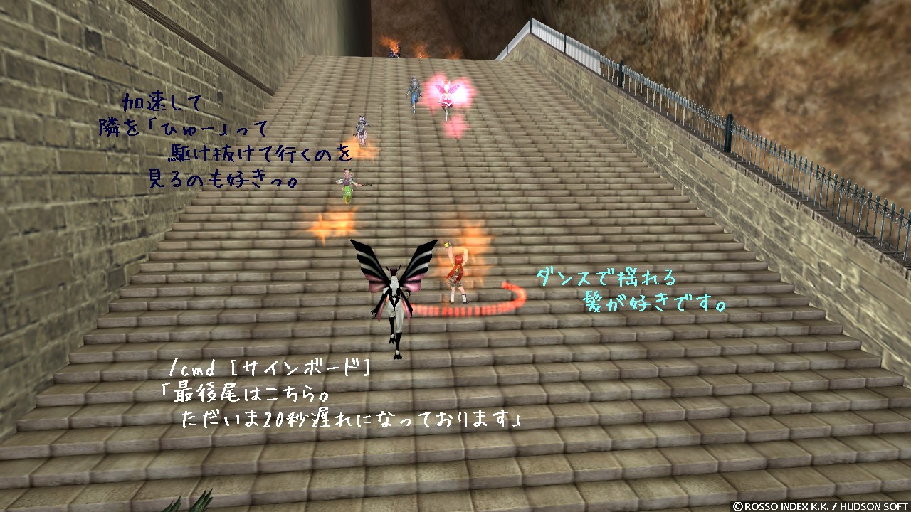 人数もそこそこ居るようなので、道中は適当に踊ってお茶を濁しながら進んでもよさそうですね。 周りを見渡すとおなじみの顔ぶれも居て、なんだか安心できます。 今日もいつものように最後尾で付いていきますよ。