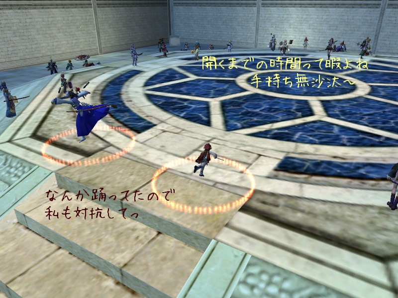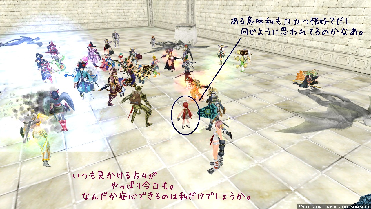さて本戦です。 今日は優秀なヒラさんが付いてくれているので私は踊ってていいかしら。 入り口で一緒になったも一人のお友達も弓さんだから基本殴られないはずだし、回復は完全にヒラさん任せでいっちゃいましょうか。