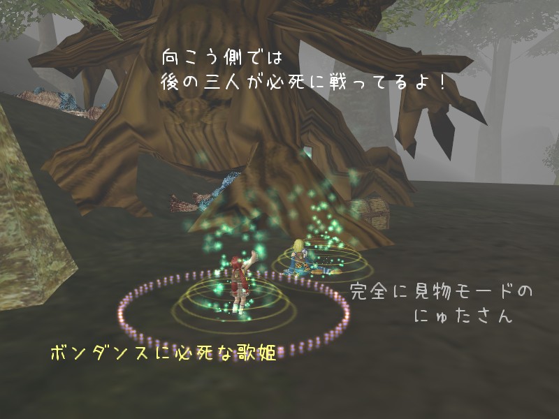 掘り出した彼女はもう仕事は終わったとばかり座って観戦モード。 私は私で後ろでボンダンスでも踊ることにします。 あと三人がアタッカー 2 にヒラ 1 なら大丈夫でしょう、多分?