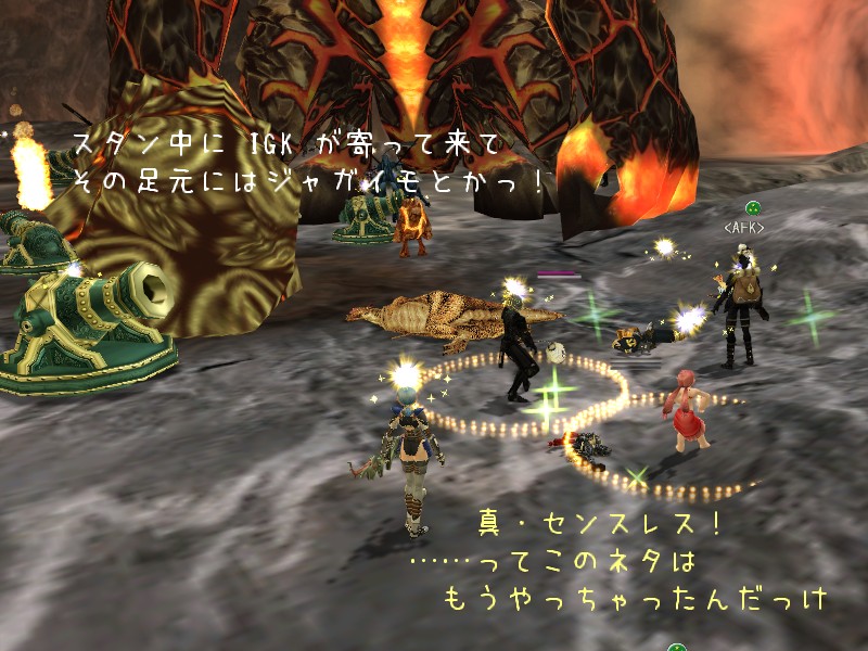 私はそれらを持っていないので事故を極力減らすため、セイクリを唱えに走りこむ時くらいにしか IGK の攻撃範囲に入って行きません。 これなら一発貰っても引いて回復すれば十分。 火口に嵌まるような状況にさえならなければ、まず安定して動いていられます。