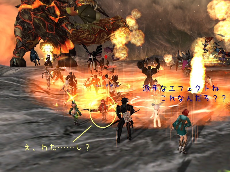 ブランクがあるワリには動きはまずまずといったところでしょうか。 基本的に攻撃の範囲外に位置取りするので、あの大きい図体の圧迫感がなく、心理的に余裕あるのが大きいのかしら。 ダメージも貰いにくいですしね。 削れを見てはセイクリ撃って、右手上げて咆えたの見てはシャワー唱えて、合間には適当にリバ撒いて。