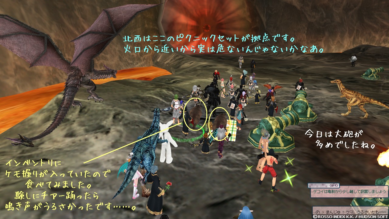 いずれにしても芋がお散歩しださなかったのはデコイのおかげですし、作戦としては成功ですね。 大砲設置・リペア係さん、持ち込み・販売係さん、呼びかけしてくれていた人たち、そして参加された皆さんお疲れ様でした。