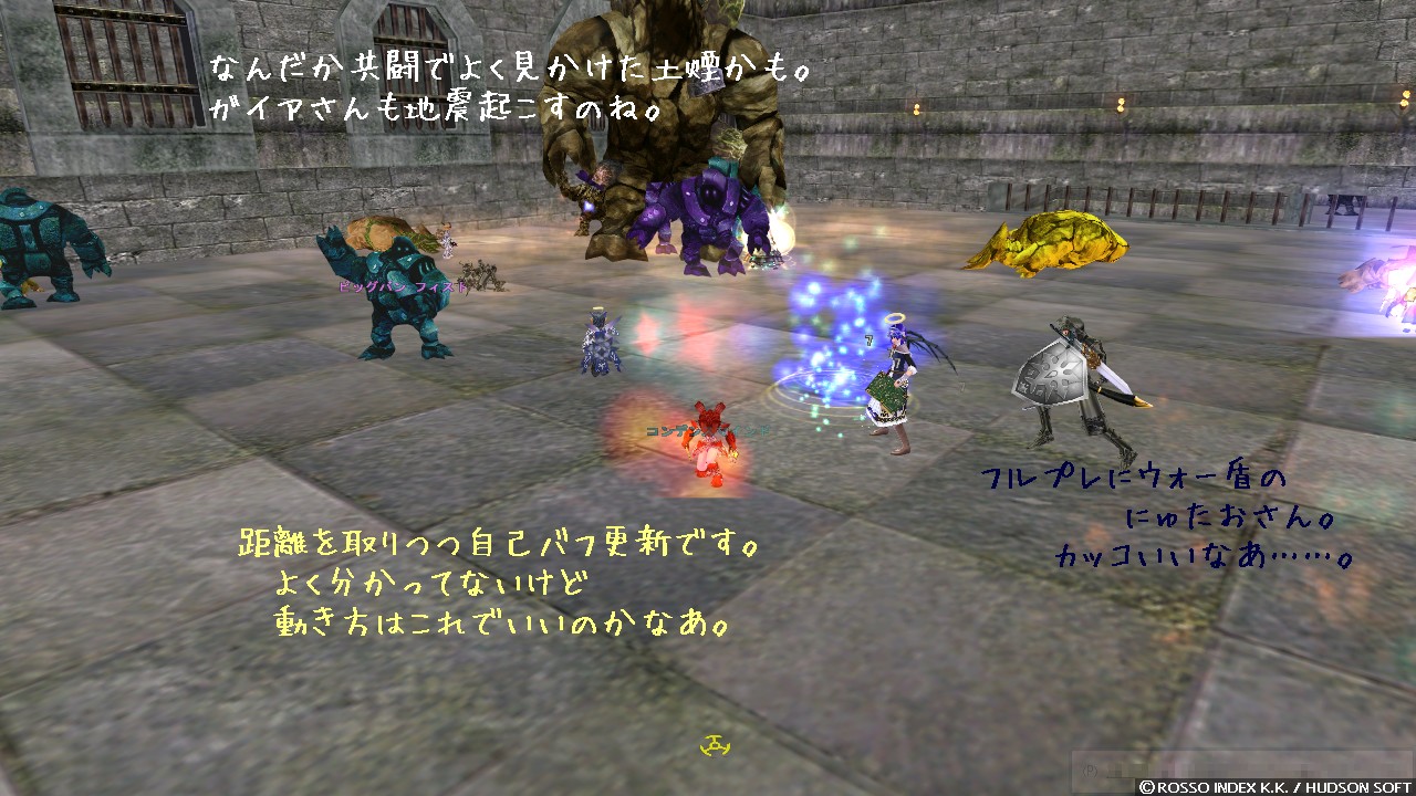 血煙もなさそうだし、回復も足りてるのかしら。 気が付くと mob も随分と減り、あとはガイアと一体、二体かな。 適当にダンスで支援に回ることにしましょうか。