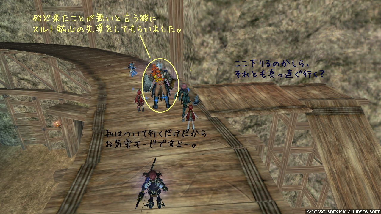 目的地は私が小一時間で落ちることもあって、まずは軽い場所です。 スルトの探索らしいんですけど、あら、道を知らない人に先導させるって話だそうですよ。 鉱山はエイシスや地下水路なんかと同様によく出来た map だと思います。 私もまだ全部の道を知りませんけど、いろいろ探検するのも楽しいですよね。