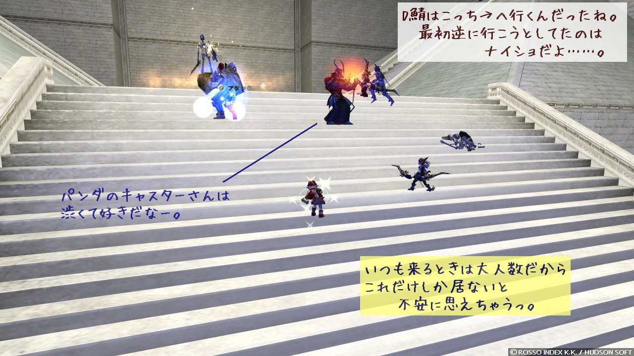 儀式や転生で宮殿へは何度も来てますけど、「狩り」に来るのは始めてです。 PT で狩りってどんなものなんでしょうね。