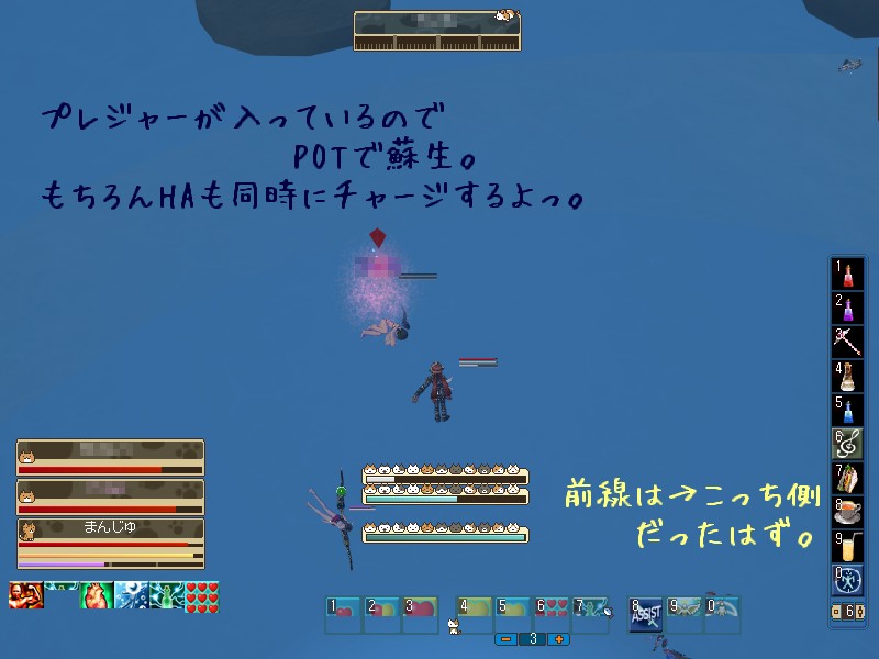 リザを掛けに行くタイミングだけは全然読めませんけど、手順には慣れてきました。 随分とスムーズに起こして HA 入れてを出来るようになりましたよ。 あ、いえ、もともとがヘタだからやっと何とか形になってきただけなんですけどね。 あと蘇生に向かうと位置を見失ってしまうのは相変わらずなので、ここは努力すべきポイントなんだと思います。