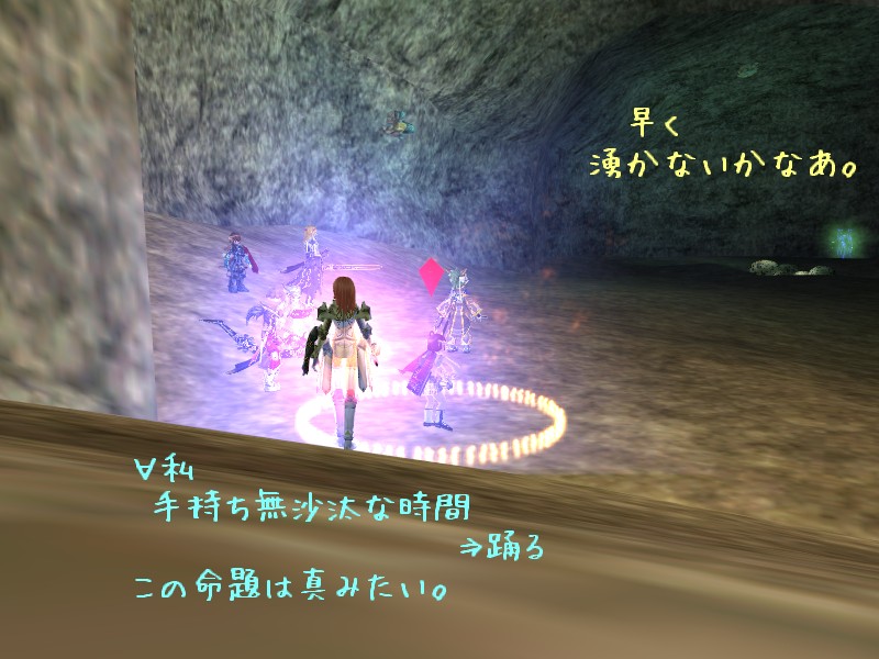 こちらもお留守だったんですけど、折角来たんだし待つことになりまして。 適当に mob をいじりつつ 20 分程度かしら、湧かないのにしびれを切らしてそろそろ帰ろうかって時にやっとガーディアン共々 POP してくれました。 空気を読んで結局出てきてくれるなら、そんなじらさなくてもいいと思うんですけどねっ。