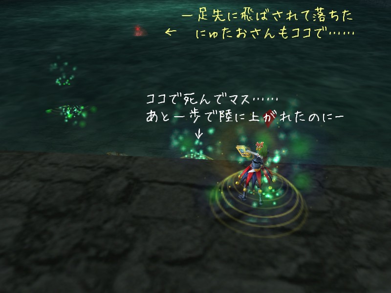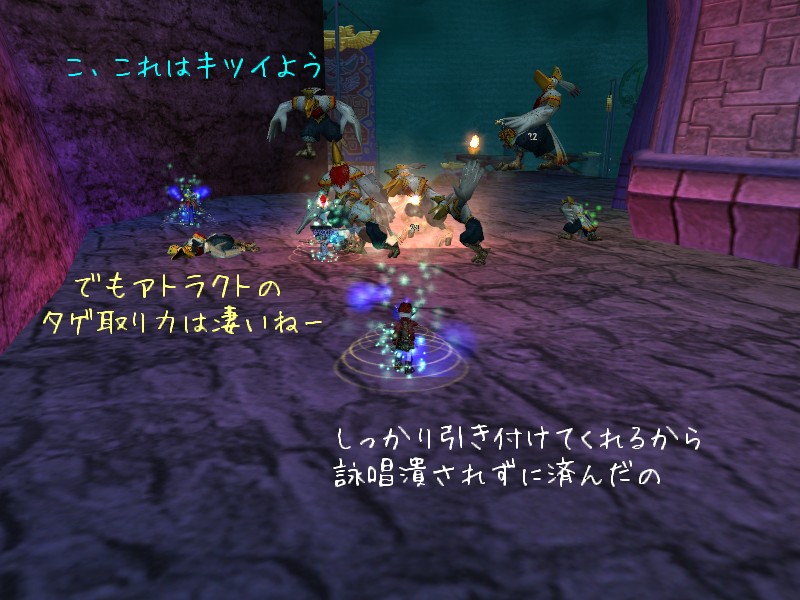 この SS のタイミングは、前衛さんが一人飛ばされて落とされた後復帰、入れ替わりにも一人の前衛さんが落とされて下でウナギとスクリューに絡まれて死亡。 こっちは戦力が減って助けに行きたいのに、知らない間にタルが倍増してて、てんやわんやな状態です。 コレだけの mob を目にしてどうしようかと思いましたが――なんとかなるものなんですね。