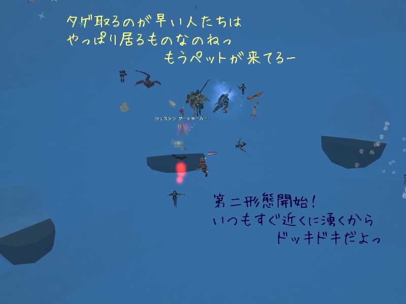 弓さんも何度か P 貰って動きづらそうにしていて、最後の最後ではロンドに巻き込まれたらしく泡を食っていたようです。 私はそのロンドに気づかず、急に姿が消えたので必死に探しながら GH 唱え続けてしまってまして……。 HP が削れているからって無闇に回復しようとするのはこの門では NG ですね。 PT 内や say での報告はありがたいですけど、必ずしもできるものではないですし、ヒールを飛ばすならもう少し繊細にやらなくちゃと感じた水の門でした。