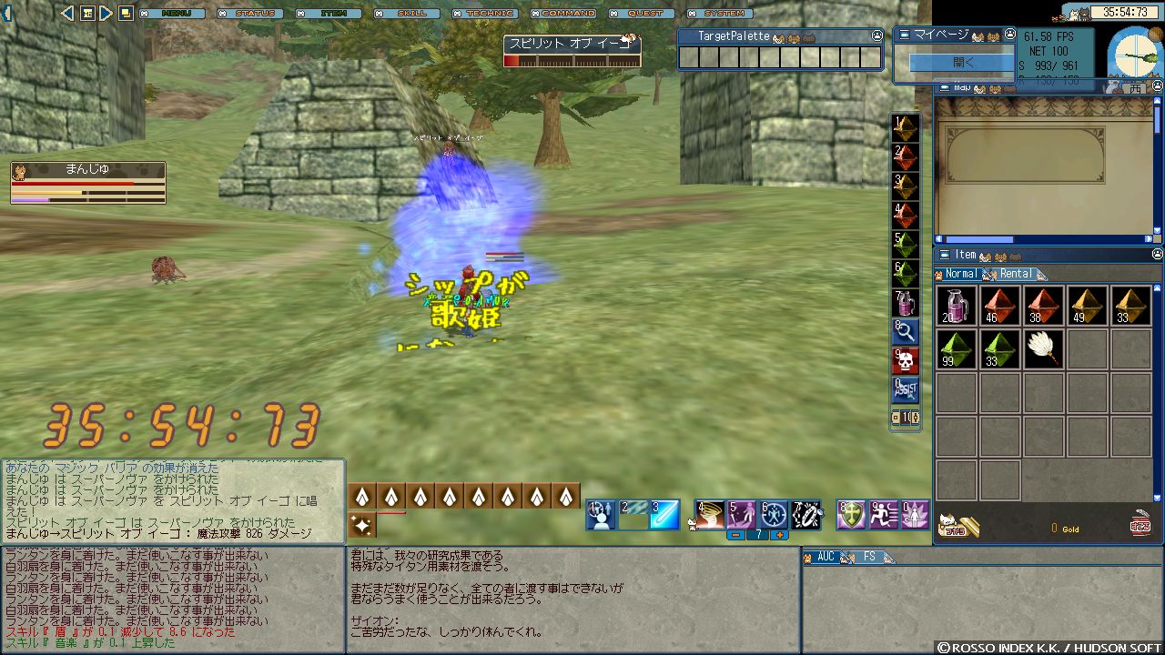私は今は wiz 型なので、最終段階はノヴァ主体で mob 狩りになります。 今まで知らなくてイビルタイタンをメインにやっていたんですけど、これ、魔法だと対象の抵抗が高いほうが上がりやすいんですね。 イビルで三回に一回 0.1 上がる位のときにふとノアスピリットに放ったら 0.2 も上がってびっくりしました。