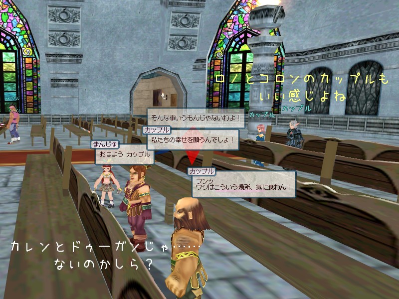 また、クリスマスイベント(?)のほうでは着々と準備が進んでいるようで、ビスク各地にカップルが溢れかえっていますね。 広場ではダイアロスの喪男代表にも彼女ができた様子ですし、某イケメンさんなんかも気になるところです。
