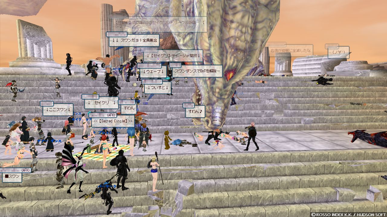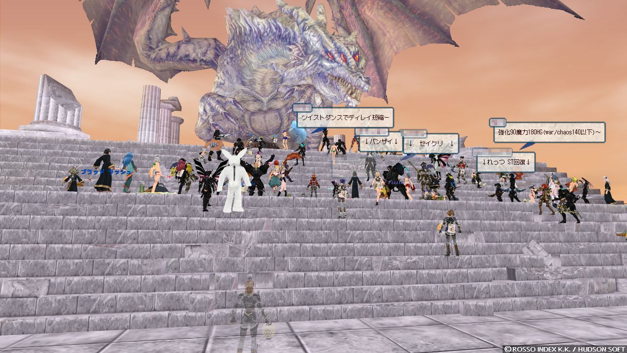 いつものバンザイを終えて前線へ赴くと、いつもに比べて少しまばらな印象でした。 門内の人数も 180 を下回ってるし、D 鯖カオスはどうしちゃったのかしら。 長引きそうな予感を抱えつつも開戦です。