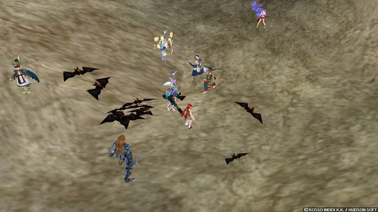 村では一通りクエストを受けて、エルクの森からエイシス入り口まで向かいます。 ここのコウモリがクエスト mob なのかな。 皆で片っ端から殲滅とか、害獣相手でもちょこっと気が引けちゃいましたけどっ。